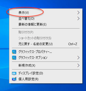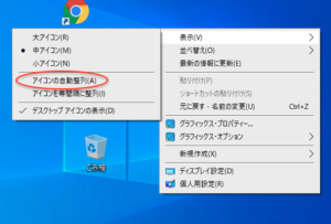 ●そして以下の画像の赤丸の”アイコンの自動整列(A)“をクリックしましょう。