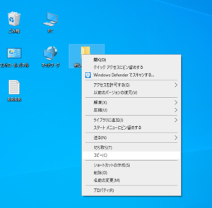 まず対象のアイコンを左クリックで選択した後、右クリックして「コピー」を選択します。