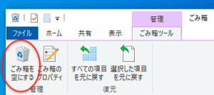 そして下の画像の赤丸の”ゴミ箱を空にする“をクリックします。