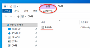 一度ゴミ箱に捨てても”ゴミ箱を空にする“を行わない限り、いつまでもゴミ箱には捨てたファイルが残っています。