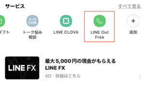 まずはLINEを起動し、サービス一覧の中にある、”LINE Out Free”をタップしましょう。