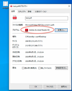 すると以下の画像のように、プログラムの箇所がAdobe Acrobat Reader DCに変わっていますので、
