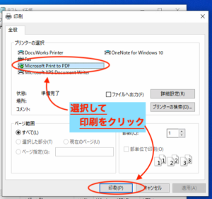 以下の画像の様にドライバを選んで、印刷をクリックします。