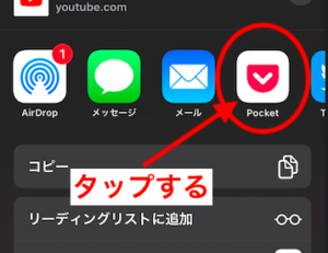 pocketアプリのアイコンが現れるのでそちらをタップすると
