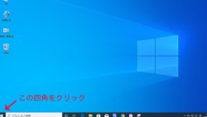 パソコンの電源を切りたい場合はまず下の図のようにパソコンの画面の左下角をクリックします。