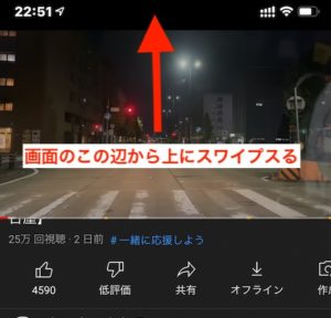 横視聴を縦視聴に戻す時は、下方向にスワイプします